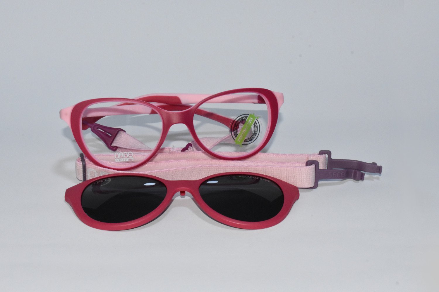 LENTES NANO PARA NIÑOS. Las nuevas gafas para niños con clip solar imantado, convierte los lentes con prescripcion de uso diario de tu niño o niña en unos lentes de sol polarizados. Lo ultimo para los más pequeños de la casa. Todas las gafas de la colección NANO incorporan 2 sistemas de sujeción: 1.- Sujeción mediante brazos ajustables: Los terminales de los brazos de las gafas NANO vienen recubiertos de Rubber Soft que permiten ajustarlas fácilmente por simple presión 2.- Sujeción mediante banda elástica: Todos los modelos de gafas NANO se les puede retirar los brazos y se les puede poner una banda elástica ajustable lo que permite una sujeción más firme de las gafas. Son fabricados en SILIFLEX, material termomoldeable de máxima resistencia y 35% más ligeras que las gafas de acetato. En conclusión: Llevate 2 gafas al precio de una!